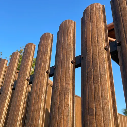 - Esztétikus, lágy vonalvezetés: Az íves keresztmetszet dekoratív, fény-árnyék hatása egyedivé teszi a kerítést, jól illeszkedve mind a modern, mind a klasszikus építészeti stílushoz.