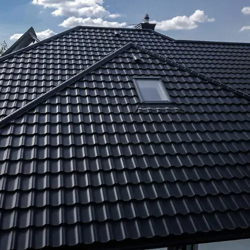 Prémium moduláris fém tetőcserép rejtett rögzítéssel. A Z-profilú bordázat és a láthatatlan csavarok letisztult, elegáns tetőt eredményeznek. Akár 55 év garancia.