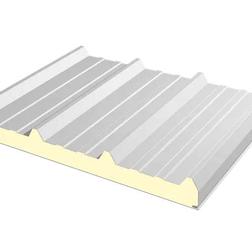 Kiemelkedő hőszigetelésű (λ ~0,021), 4 bordás tetőpanel PIR hab töltettel. Energiahatékony és tűzbiztonságos megoldás ipari csarnokokhoz és raktárakhoz.