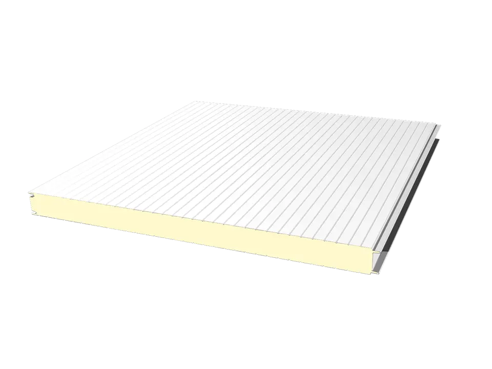 Kiváló hőszigetelésű (λ~0,022), PIR habos falpanel látszó rögzítéssel. Gazdaságos, energiahatékony és tűzbiztonságos megoldás ipari csarnokok oldalfalaihoz.
