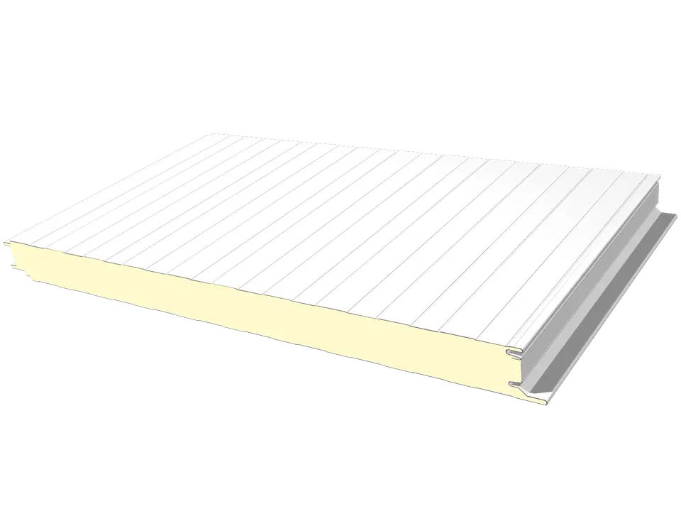 Prémium megjelenésű, rejtett rögzítésű PIR habos falpanel. Csavarmentes, esztétikus homlokzat kiváló hőszigeteléssel (λ~0,022) ipari és kereskedelmi épületekhez.