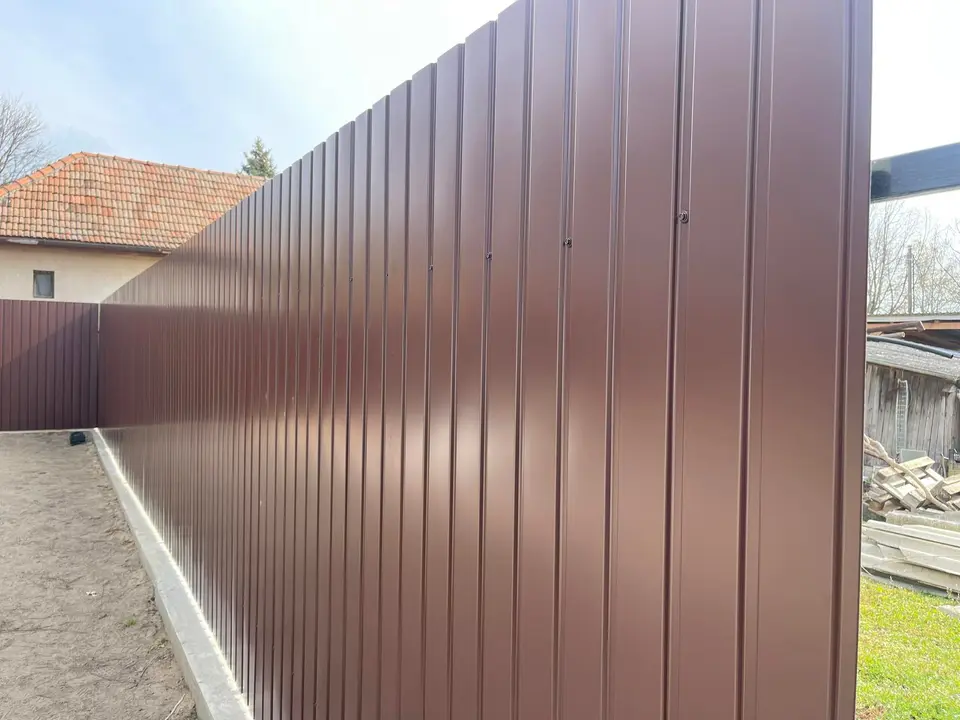 Saját gyártású, alacsony bordamagasságú (8 mm) trapézlemez. Ideális kerítések, oldalfalak és álmennyezetek burkolására. Széles szín- és famintás választékban.