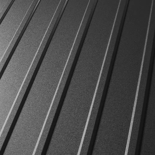 A 8 mm-es profilmagasság diszkrét bordázatot ad, amely kiválóan alkalmas oldalfalak, kerítések, kapuk és álmennyezetek burkolására. A lemezek mindkét oldalon horganyzott, poliészter bevonatú acélból készülnek, ami garantálja a hosszú élettartamot kültéren is.